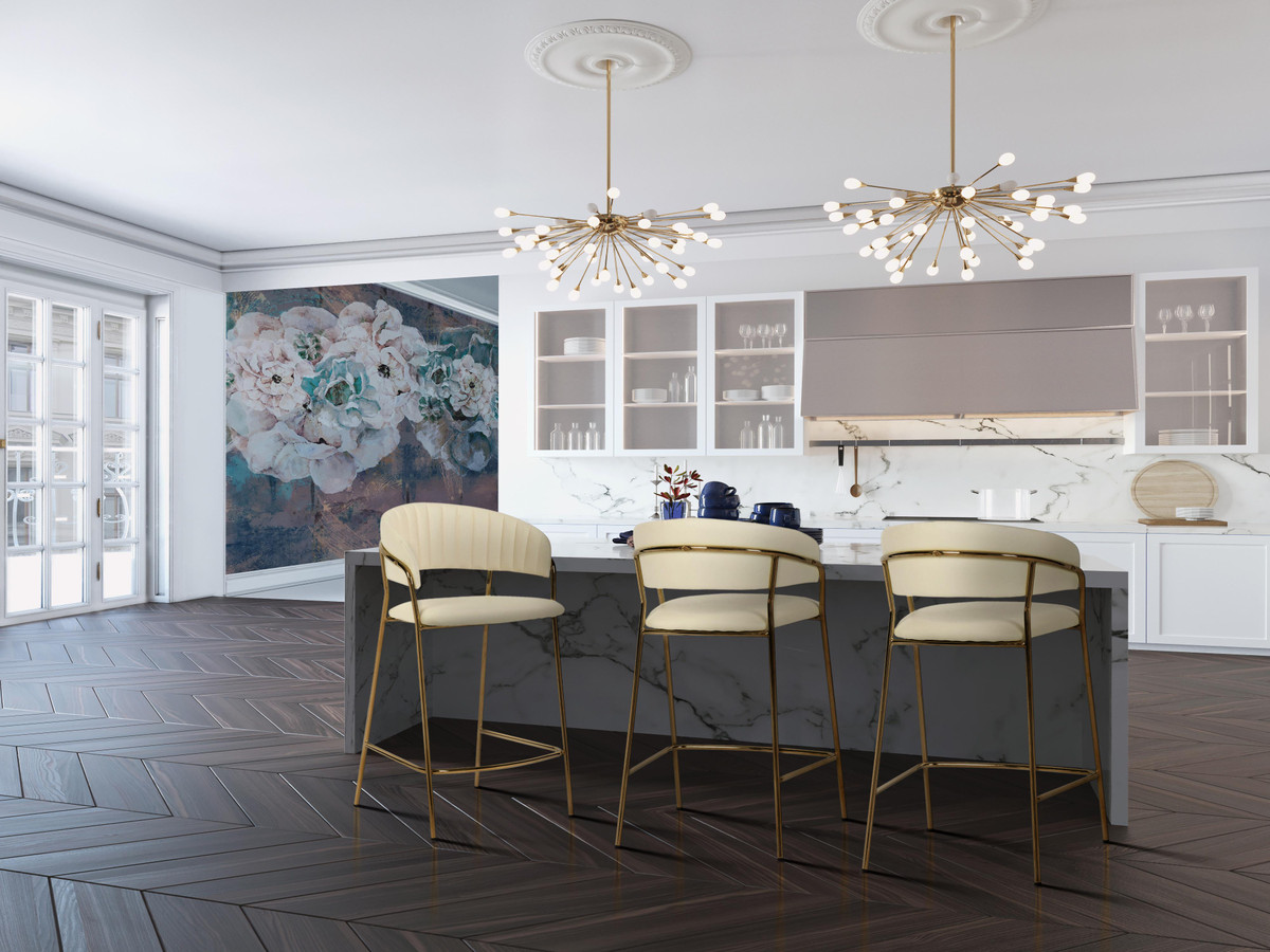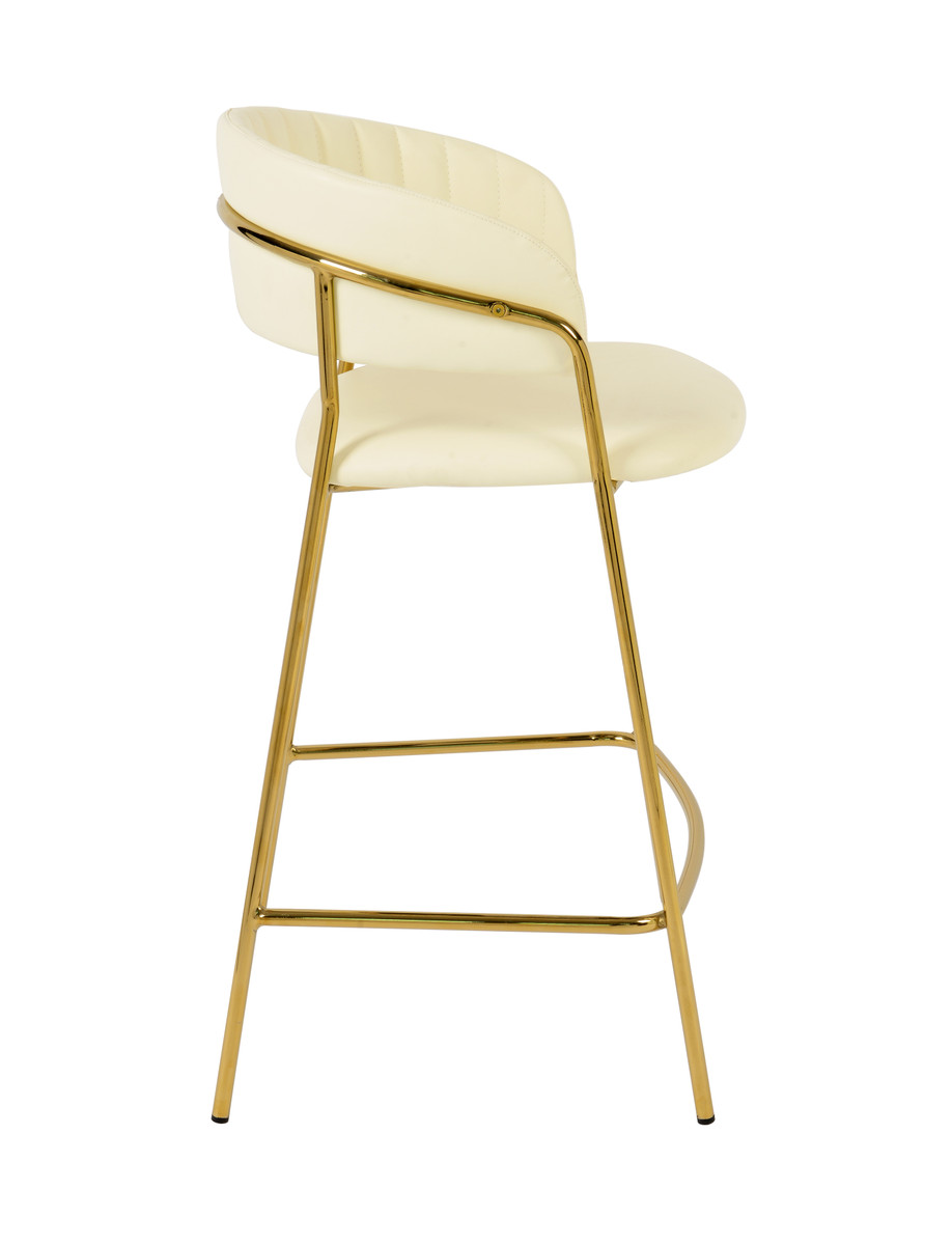 This stool speaks a modern purpose. Its polished gold frame combined with its cushioned upholstered seat and back, provide an edgy twist that will give any room the glam effect it deserves.